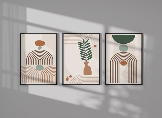 Minimalist Wall Art Set Of 3 Sage Green Prints Green Botanical Prints Terracotta Wall Art Terracotta Minimalist Modern Room Wall Decor Etsy